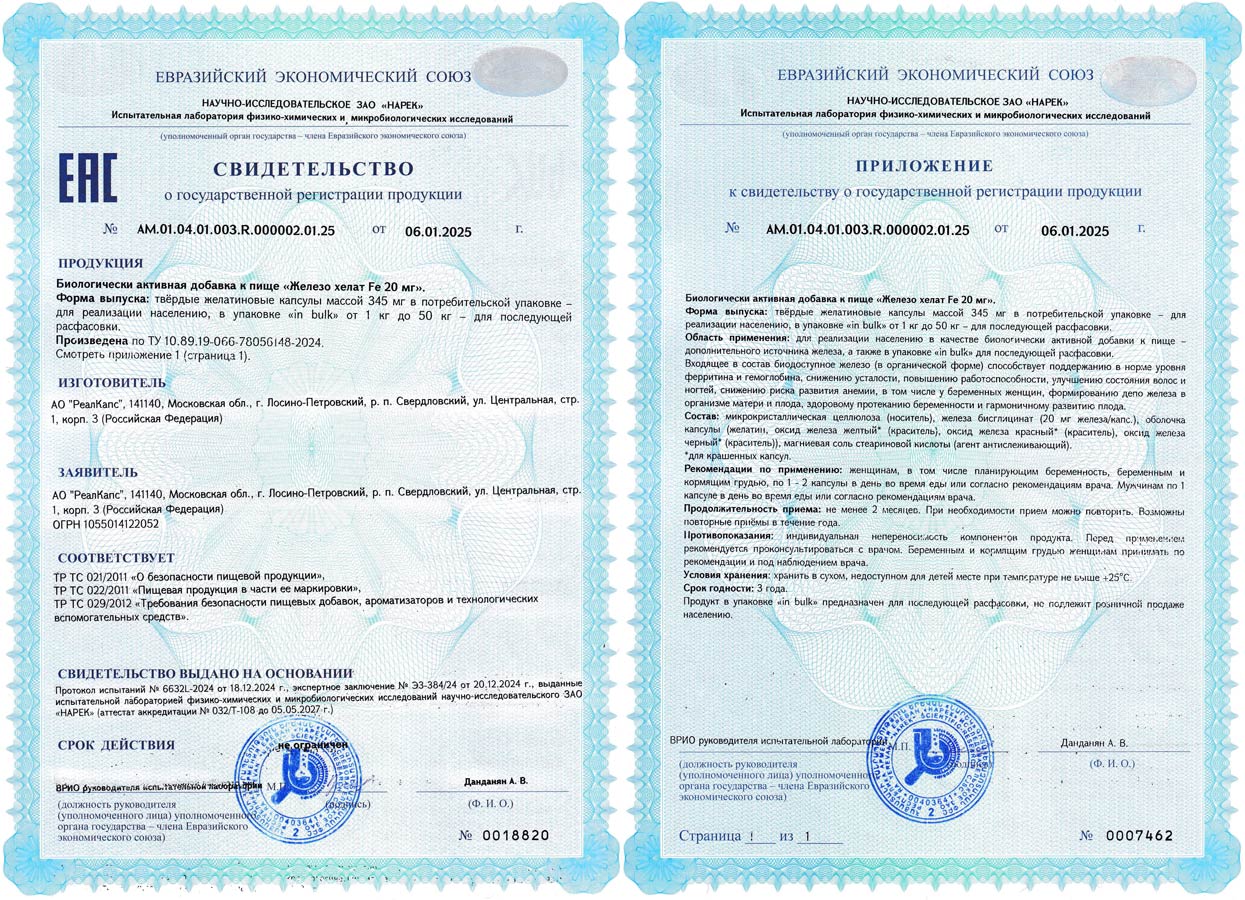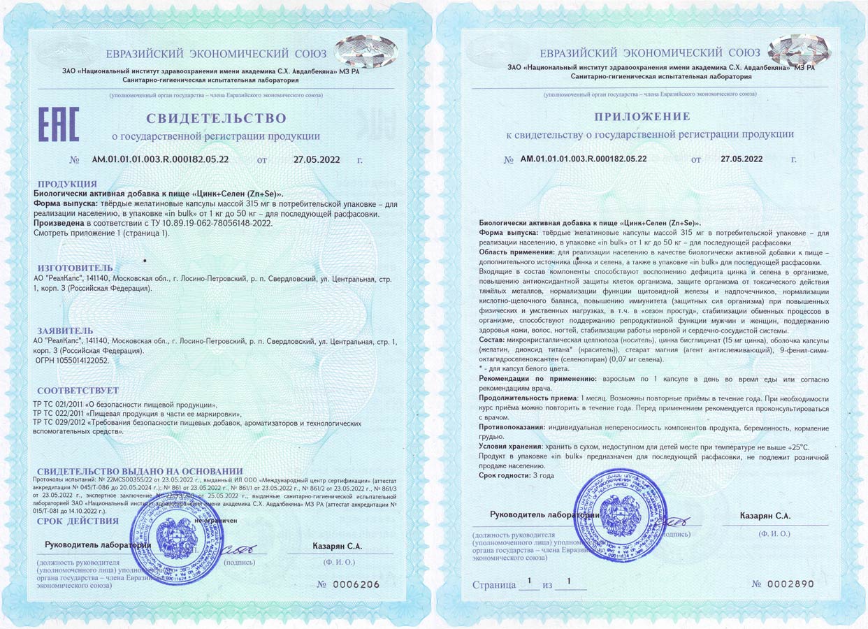 Свидетельство о государственной регистрации № AM.01.06.01.003.R.000006.01.20 от 15.01.2020, ТУ 10.89.19-047-78056148-2019.
