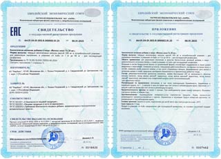 Свидетельство о государственной регистрации № AM.01.06.01.003.R.000006.01.20 от 15.01.2020, ТУ 10.89.19-047-78056148-2019.